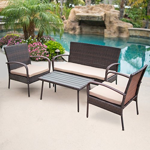 Elegant and Comfortable 4 Piece Wicker set will transform your outdoor area into a cozy private retreatSimple Contemporary Design of this patio set suits a range of tastes and preferences which complements any OutdoorIndoor living spaceSophisticated Touch Table with removable wood piece adds a sophisticated touch and allows you to place drinks meals or decorative items on topClassy Design Patio set features a classy and comfortable fabric cushion which matches with a rich Rattan materialEye catching Table includes a beautiful top to hold light itemsMore Info and Reviews Manufacturer: BELLEZE; Model: ; MPN: 014 HG 17015 BRO; Part Number: 014 HG 17015 BRO; UPC: 192928000306; Color: Brown; Brand: Belleze; Department: ; Size: ; Warranty: ; Label: BELLEZE; Amazon Sale Rank: 100549;Buy On Amazon