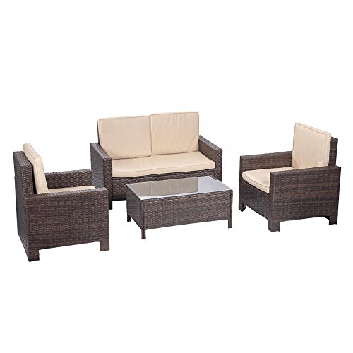 Cushion cover has zipper for smooth opening and closeMade of solid steel frame and high quality PE rattan in durable constructionSuitable for outdoor use like garden park patio poolside etc Tea table with tempered glassDetachable 4 pieces in total Washable cushion filled with cotton for extra comfortWaterproof cushion cover is made of polyester cloth Sofa feet with adjustable foot padMore Info and Reviews Manufacturer: BestMassage; Model: ; MPN: ; Part Number: ; UPC: 848837027438; Color: ; Brand: BestMassage; Department: ; Size: ; Warranty: ; Label: BestMassage; Amazon Sale Rank: 15455;Buy On Amazon