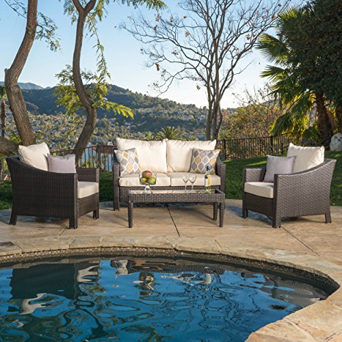 The Caspian 4 piece Multi Brown Chat Set is the perfect furniture set for any outdoor decor. Featuring two comfortable chairs a gorgeous love seat and coffee table this outdoor living set makes entertaining guests a breeze. Built with ultimate durability these pieces will withstand your outdoor setting for many years to come. Includes: Two (2) Chairs One (1) Loveseat and One (1) Coffee Table Color: Multi Brown Cushion Color: Beige Materials: PE + Iron Assembly Required Chair Dimensions: 33.50″ D x 30.00″ W x 29.50″ H Seat Width: 17.50″ Seat Depth: 23.25″ Seat Height: 26.75″ Arm Height: 24.50″ Loveseat Dimensions: 33.50″ D x 59.50″ W x 29.50″ H Seat Width: 52.75″ Seat Depth: 26.75″ Seat Height: 17.50″ Arm Height: 24.50″ Coffee Table Dimensions: 19.68″ D x 43.30″ W x 14.96″ H Includes Two 2 Chairs One 1 Loveseat and One 1 Coffee TableChair Dimensions 3350 D x 3000 W x 2950 H Seat Width 1750 Seat Depth 2325 Seat Height 2675 Arm Height 2450 Coffee Table Dimensions 1968 D x 4330 W x 1496 HLoveseat Dimensions 3350 D x 5950 W x 2950 H Seat Width 5275 Seat Depth 2675 Seat Height 1750 Arm Height 2450Assembly RequiredThe Caspian 4 piece Multi Brown Chat Set is the perfect furniture set for any outdoor decor Featuring two comfortable chairs a gorgeous love seat and coffee table this outdoor living set makes entertaining guests a breeze Built with ultimate durability these pieces will withstand your outdoor setting for many years to comeMore Info and Reviews Manufacturer: Great Deal Furniture; Model: ; MPN: ; Part Number: ; UPC: 637162974902; Color: Brown; Brand: Great Deal Furniture; Department: ; Size: 4 Piece; Warranty: ; Label: Great Deal Furniture; Amazon Sale Rank: 33355;Buy On Amazon
