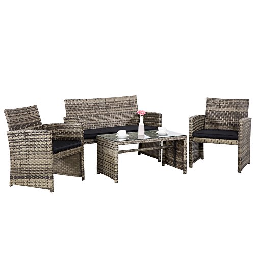 EASY ASSEMBLE 1 love seat sofa 2 single sofas 1 tempered glass table 3 seat cushions Easy assembly required all hardware included Ship from US in 1 BOXMATERIAL FOR OUTDOOR Wicker set is constructed of strong powder coated steel frame and hand knitting PE rattan wicker outside Light enough to removeEASY CLEAN Comfortable sponge padded cushions covered with removable polyester covers which allow for easy cleaning and maintenanceMOST LIKED ON INSTAGRAM 1000 people like this 4 piece conversation setMULTI FUNCTIONAL Table with 5 mm detachable tempered glass adds a sophisticated touch and allows you to place drinks meals or decorative items on itMore Info and Reviews Manufacturer: Cloud Mountain; Model: CM0016; MPN: CM0016; Part Number: CM0016; UPC: 608442162296; Color: Mix Gray Rattan With Black Cushions; Brand: Cloud Mountain; Department: ; Size: 4 Pice Style 2; Warranty: ; Label: Cloud Mountain; Amazon Sale Rank: 105576;Buy On Amazon