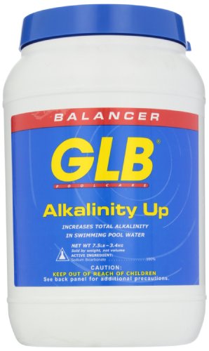 This balancer increases the alkalinity of pool water to prevent the pH level from fluctuating. Aids in preventing pH level from changing. Easily maintain the proper alkalinity level of 80 120 ppm. Helps maintain proper water balance. When the pH value of the pool water fluctuates from low to high and back again in a short time it is usually the result of a low total alkalinity condition of the pool water. Use GLB test strips to test pH and alkalinity. Compatible with chlorine bromine ozone salt water pools and biguanide sanitizers. Applications are determine the total alkalinity level if the value is below 75 ppm add a sufficient amount of alkalinity up by pouring it directly into the pool to increase the total alkalinity to at least 75 ppm. Alkalinity up will provide approximately 10 ppm increase in total alkalinity for each 10 000 gallons of water. Wait at least 8 hours for the material to distribute uniformly before rechecking the alkalinity level. Product contain 7.5 pounds per bottle. Includes 4 pieces per pack. Balancer increases the alkalinity of pool water to prevent the pH level from fluctuatingEasily maintain the proper alkalinity level of 80 120 ppmHelps maintain proper water balanceUsually show the result of a low total alkalinity condition of the pool waterCompatible with chlorine bromine ozone salt water pools and biguanide sanitizers Manufacturer: GLB; Model: GL71202; MPN: 71202; Part Number: 71202; UPC: 073187712028; Color: ; Brand: GLB Pool Spa Products; Department: ; Size: 7 1 2 Pound; Warranty: ; Label: GLB; Amazon Sale Rank: 26592;