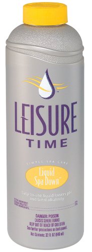Convenient liquid Spa Down offers precise control of the adjustment of the spa or hot tub pH level. Pre mixed liquid formula arrives ready to use and does not require mixing or diluting before adding to the spa or hot tub. Fast acting liquid formula is easier to use than common granular spa water balancers. Compatible with bromine chlorine and biguanide sanitizers. Instructions: Turn ON air blower or filter system. Add 1 ounce directly into spa. Retest water after 30 minutes. Follow steps 1 3 until pH and total alkalinity are in the range of 7.2 7.8 and 80 120 ppm respectively. Spa water should be maintained at a pH of 72 78 and a total alkalinity of 80 120 ppmTo lock in the pH from refill to refill try Leisure Time pH Balance or Leisure Time pH Balance PlusRaises the pH and total alkalinity in spa water Pour directly into spa water and circulateDecreases pHCompatible with chlorine bromine ozone and biguanidesSolution requires no dilutingThis item is not for sale in Catalina Island Manufacturer: Leisure Time; Model: ZIQ; MPN: ZIQ; Part Number: ZIQ; UPC: 785336304403; Color: Silver; Brand: LEISURE TIME; Department: ; Size: 1 Pack; Warranty: ; Label: Leisure Time; Amazon Sale Rank: 62800;