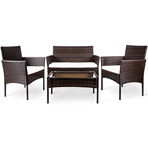 Return Policy: http://www.amazon.com/sp?&seller=AG5L3JJZ30XAY&tab=policies Upgrade your compact outdoor space Compact contemporary design is perfect for outdoor nooks backyards patios gardens balconies and moreWeather and wear resistant Quality tested flat weave PE rattan wicker formulated for anti wear resistance with heavy duty steel frame keep it outside all year roundEasy Maintenance Removable washable cream white cushion coversManufactured for easy assembly Includes user friendly instructions and required hardwareDimensions Double sofa405L X 22W X 32H Armchair226L X 22W X 32H Table 279 L x 163 W x 155 HMore Info and Reviews Manufacturer: Merax; Model: 4 PC; MPN: ; Part Number: ; UPC: ; Color: Brown; Brand: Merax; Department: ; Size: ; Warranty: ; Label: Merax; Amazon Sale Rank: 16284;Buy On Amazon