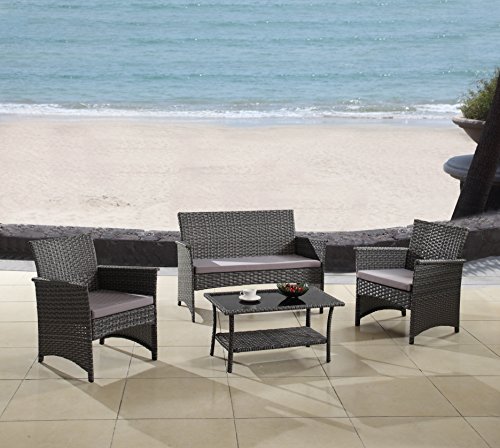 Divano Roma Furniture’s signature modern outdoor patio furniture. Our patio furniture is of high and durable quality with woven rattan material that is made to last and endure all weather. All of our outdoor seating items include high density foam seat cushions with removable covers for easy cleaning / washing. Coffee table includes glass top with steel frame on all pieces. Beautiful outdoor patio seat set with loveseat 2 chairs and coffee table with glass topSteel frame with rattan wicker in a blended ash grey and dark espresso with comfortable high density foam seat cushionsCushion covers are removable and easy to cleanwash Material is water resistantMinor assembly required Instructions and hardwarMinor assembly required Instructions and hardware included Dimensions Loveseat 43W x 20D x 32H LS Cushion 41W x 20D inches Chairs 23 W x 20D x 32H Chair Cushion 20W x 195D inches Coffee Table 32W x 19D x 165H inchese includedShips right to your door Unable to ship to Hawaii Alaska Puerto Rico The Virgin Island PO BOX or APOMore Info and Reviews Manufacturer: Divano Roma Furniture; Model: RTN18; MPN: RTN18; Part Number: RTN18; UPC: 647923459302; Color: Grey; Brand: Divano Roma Furniture; Department: ; Size: ; Warranty: ; Label: Divano Roma Furniture; Amazon Sale Rank: 34497;Buy On Amazon