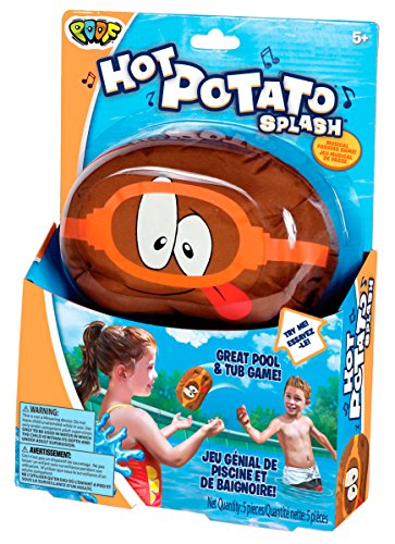 Wild frantic laugh out loud electronic musical tater tossing good time for play in bathtubs and poolsSqueeze the Hot Potato to begin the game’s music and the fun beginsPass the potato to another player but don’t get caught holding the spud when the music stopsIncludes an electronic Hot Potato Splash 3 LR44 batteries and instructionsRecommended for children 5 years of age and older