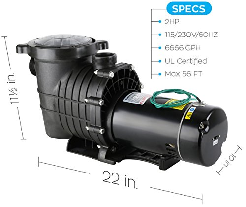 Highest Flowing Pool Pump In Its Class ✓ With a flow rate of 111 gallons per minute this 2 HP pool pump by SumpMarine will outflow and out clean other competing pool pumps. ✓ This means that your pool will be clean clear and free of debris (where as other pool pumps may struggle keeping up with removing debris). ✓ Not only that the oversized filter basket means you will need to empty it less frequently than with other pumps and their much smaller filters. ✓ Its superior construction features a heavy duty corrosion proof polymer housing for the filter portion and a 304 stainless steel drive shaft for the 2 HP electric motor. Built in overload protection and thermal cut out protection ensures your pump stays protected in conditions where others would fail. A 1 year warranty is standard with each SumpMarine pump and a full 60 day return policy is offered a testament to how confident we are of this pool pumps quality and performance. Specifications: Horsepower: 2 HP Voltage: 115V Watts: 1500 Amps: 13 Flow Rate: 111 gallons/min (420L/min) H Max: 56 feet Port Size: 1 1/2″ Low vibration High durability and corrosion proof polymer housing Ingress protection: IPX5 Built in overload protection Thermal cut out protection Oversized filter for less frequent cleaning 304 Stainless Steel drive shaft 2HP In Ground Pump Heavy duty high performance motor with air flow ventilation for quieter cooler operation.6666GPH With a Flow Rate of 6666 Gallons Per Hour (111.1 Gallons Per Minute) this Swimming Pool Pump works swiftly and efficiently!115/230V/60HZ With Dual Voltage simply flip the switch between 115V and 230V. For Easy Rewiring a Wiring Diagram is now included!Easy Start Fill pump with water upon first use to prevent motor from overheating.UL Certified This Swimming Pool Pump has a UL Certification to ensure recognized Standards for Safety.More Info and Reviews Manufacturer: SumpMarine; Model: ; MPN: ; Part Number: ; UPC: 647358814974; Color: Black; Brand: SumpMarine; Department: ; Size: ; Warranty: ; Label: SumpMarine; Amazon Sale Rank: 14663;Buy On Amazon