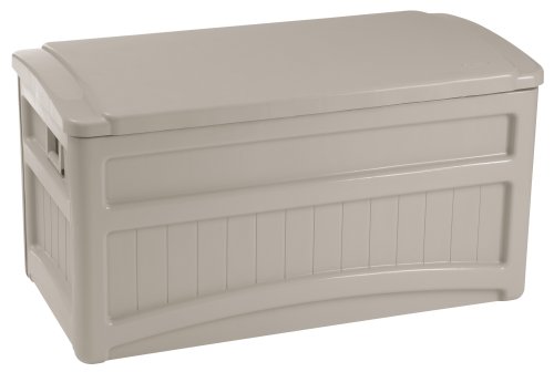 Dress up that patio deck or porch with the arched flat panel design and stylish vertical grooves on this Outdoor Accessories Storage Box from Suncast. Perfect for storing outdoor furniture cushions and accessories this storage box is equipped with smooth rolling casters for easy transport over deck beams stone patios and grass. Suncast’s innovative stay dry design keeps moisture and condensation out for clean reliable long term storage. A durable resin construction ensures years of dependable storage. Plus easy five minute tool free assembly will have this unit at the ready shortly after delivery. Carrying handles make it easy to carry this unit up steps and lift it over thresholds. Storage boxdeck bench with 73 gallon capacityCarrying handles and wheels for easy portability up stepsEasy 5 minute assembly no tools requiredStay dry design durable resin constructionExterior dimensions 46 by 22 by 23 Interior 42 by 19 by 21 inches W x D x HMore Info and Reviews Manufacturer: Suncast Corporation; Model: DB7000W; MPN: DB7000W; Part Number: DB7000W; UPC: 044365009230; Color: Taupe; Brand: Suncast; Department: Home; Size: 46L x 22W x 23H in ; Warranty: ; Label: Suncast Corporation; Amazon Sale Rank: 63737;Buy On Amazon