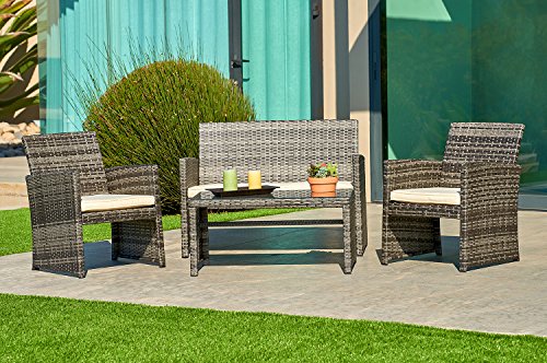 Great for reading chatting and sharing a great glass of wine with friends or family. CHARMING CONVERSATION SET Great for small spaces or creating a cozy nook this outdoor wicker furniture set comes with two chairs a love seat and a tempered glass top tableCLASSIC SOPHISTICATION Each grey wicker patio set features a handsome checkered pattern for a beautiful classic style Plush cushion covers come with a zipper for easy washingWEATHER RESISTANT RESIN Designed specifically for indoor or outdoor use this wicker conversation set is strong enough to withstand the rain sun and windGORGEOUS GLASS TABLE TOP Each perfectly sized drink table features a tempered glass top thats equally gorgeous and durable for long lasting outdoor useQUICK EASY ASSEMBLY Includes all necessary hardware and instructions for a quick assembly Estimated assembly time is 30 minutesMore Info and Reviews Manufacturer: Suncrown; Model: ; MPN: ; Part Number: ; UPC: 645789654626; Color: Grey; Brand: Suncrown; Department: ; Size: ; Warranty: ; Label: Suncrown; Amazon Sale Rank: 11077;Buy On Amazon
