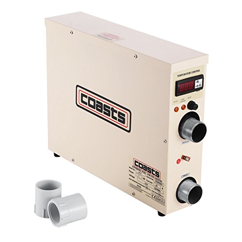 Housing material: Aluminum coated plate; Power: 11 KW; Current: 50A; Volt: AC 220 240VPipe Diameter: 2″/5.08cm; Wire: 3×10 mm²Unique control system: ST series are the newest generation with our unique control systemManual reset temperature control switch: Once unexpected high temperature 60℃ occurs the temperature switch cuts off the systemThe ST series pool heaters are special used for small pool less than 5CBM massage pool and hot spring to heat and keep warm; Meanwhile can be a assistant for heat pump in heating. This product adopts latest constant temperature controller temperature sensor replaces traditional magnetic flow switch it improves greatly of trouble free in working time adaptability of water environment and stability