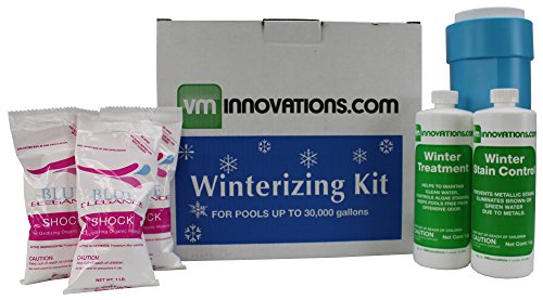 Prepare your pool this winter with our pre measured winterizing closing kit. Our powerful combination of winterizing chemicals help to prevent algae growth eliminate minerals and metals that can cause liner stains and build up and purge lotions oils grease and grime from your pool water. Ordering a larger winterizing kit than your pool size may help to protect against winter cover problems. Winterizing kit includes: Winter Treatment 1 Quart Stain Control 1 Quart Non Chlorine Shock 3 Pounds Large Winter Floater (1) This kit can be used on salt water pools! This Winterizing Closing Kit is designed for use in pools up to 30 000 gallons in size. Kit instructions included! Swimming Pool Winterizing Chemical Closing Kit Up To 30 000 Gallons1 Quart Winter Treatment ensures clear water for closing1 Quart Stain Control helps prevent and control algae stains and build up3 Pounds Non Chlorine Shock kills micro contaminants algae and pathogens1 Large Floater will control deposits on pool surfaces during the winter months Manufacturer: VMInnovations; Model: ; MPN: 61942; Part Number: 61942; UPC: 786134756432; Color: ; Brand: VMInnovations; Department: ; Size: ; Warranty: ; Label: VMInnovations; Amazon Sale Rank: 61501;